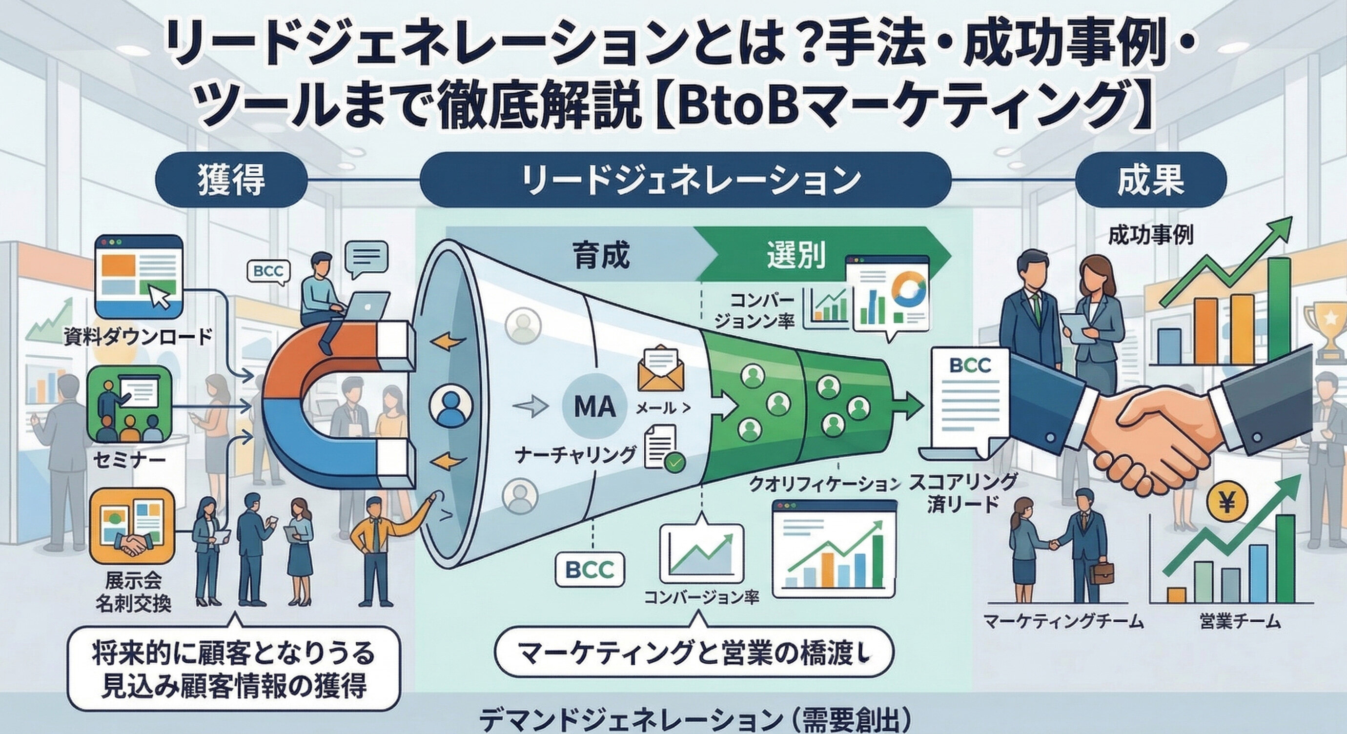営業のツボリードジェネレーションとは?手法・成功事例・ツールまで徹底解説【BtoBマーケティング】リードジェネレーションとは何かをわかりやすく解説。手法、デマンドジェネレーションとの違い、MAツールの活用、成功事例まで紹介。BtoBマーケティングで見込み顧客を獲得する方法を解説します。