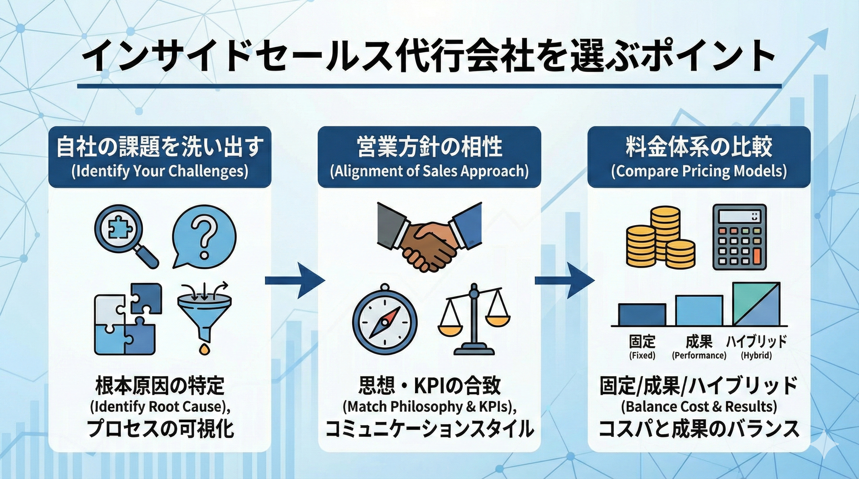 これらの項目を並列比較することで、単に「安い会社」「アポが多い会社」ではなく、“自社の課題を解決できるパートナー”を正しく選べるようになる。最終的に重要なのは、会社規模や料金よりも「営業プロセス全体を理解し、結果につながる仕組みづくりを支援してくれるかどうか」であり、この比較軸は外せない視点となる。