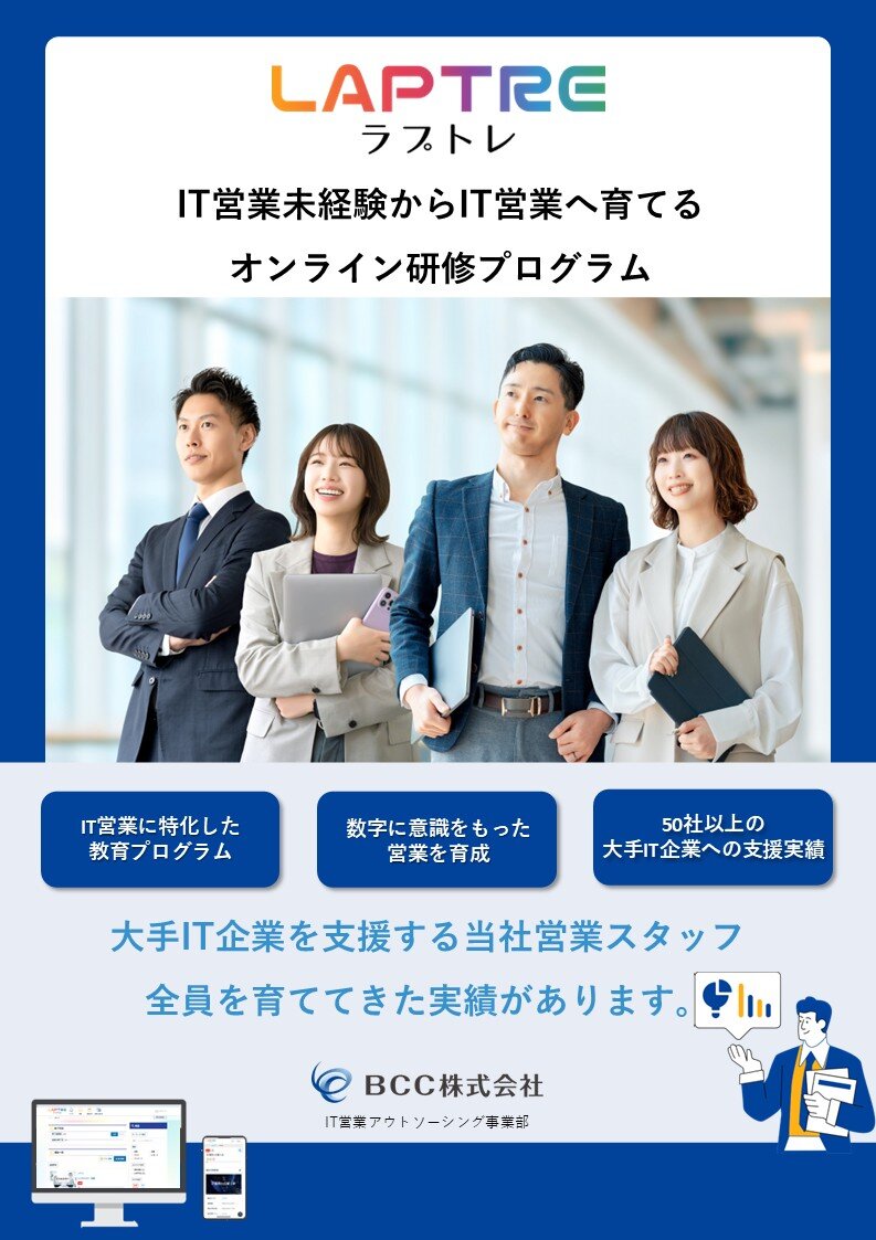 ラプトレはIT業界の営業人材を育てる事に特化したeラーニングサービスです。こちらからご登録いただけますと、ラプトレが分かる資料2点と実際のeラーニングカリキュラム動画を簡単にご覧いただけます!