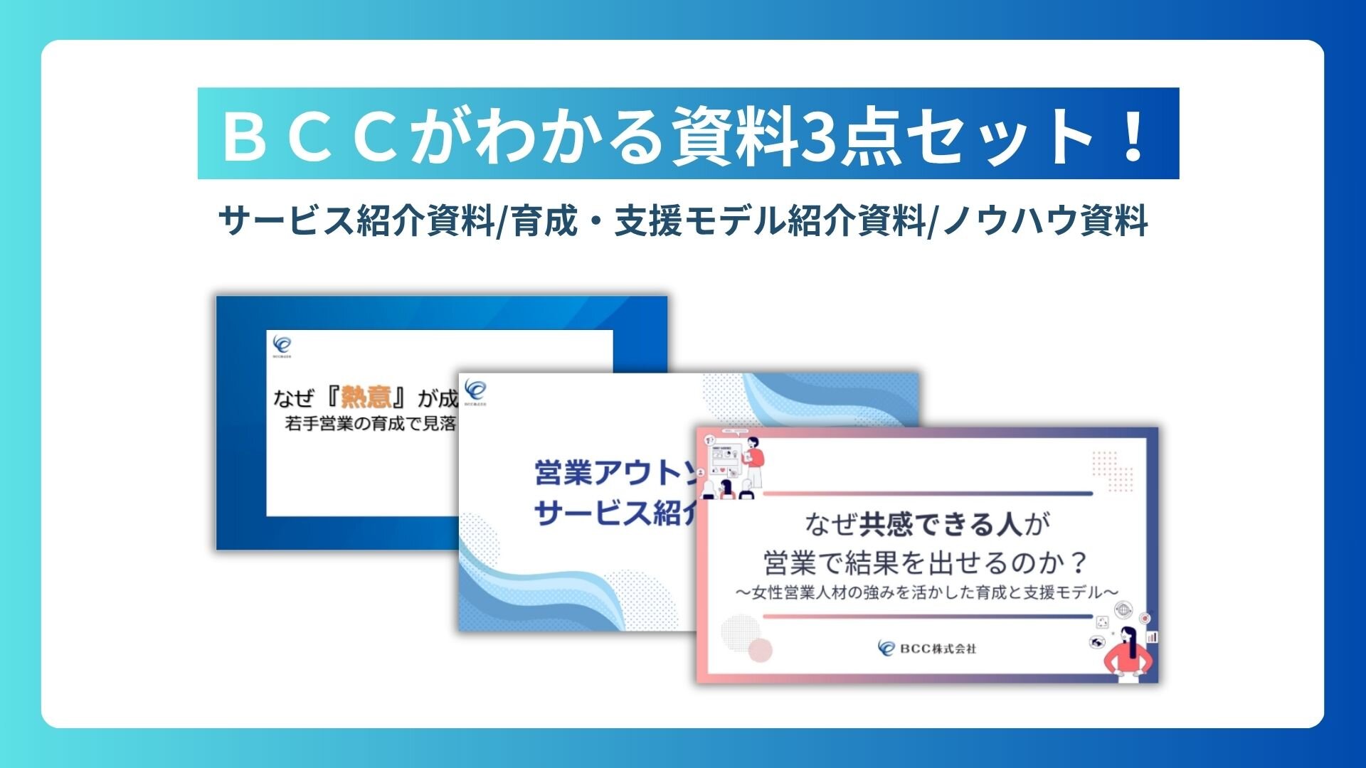営業部門の強化に向けて、「採用が難しい」「若手が育たない」「属人化している」といった課題を感じることはございませんか?こちらの資料では、これまで大手IT企業の営業部門に営業アウトソーシング支援を行ってきたBCCのノウハウをもとに、営業組織の成果創出に必要な要素をまとめてご紹介します。