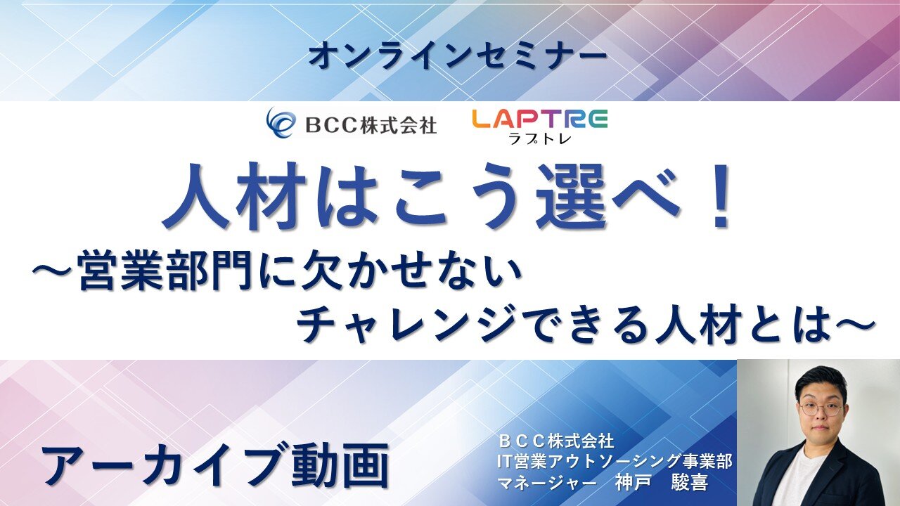 【アーカイブ動画】人材はこう選べ!~営業部門に欠かせないチャレンジできる人材とは~