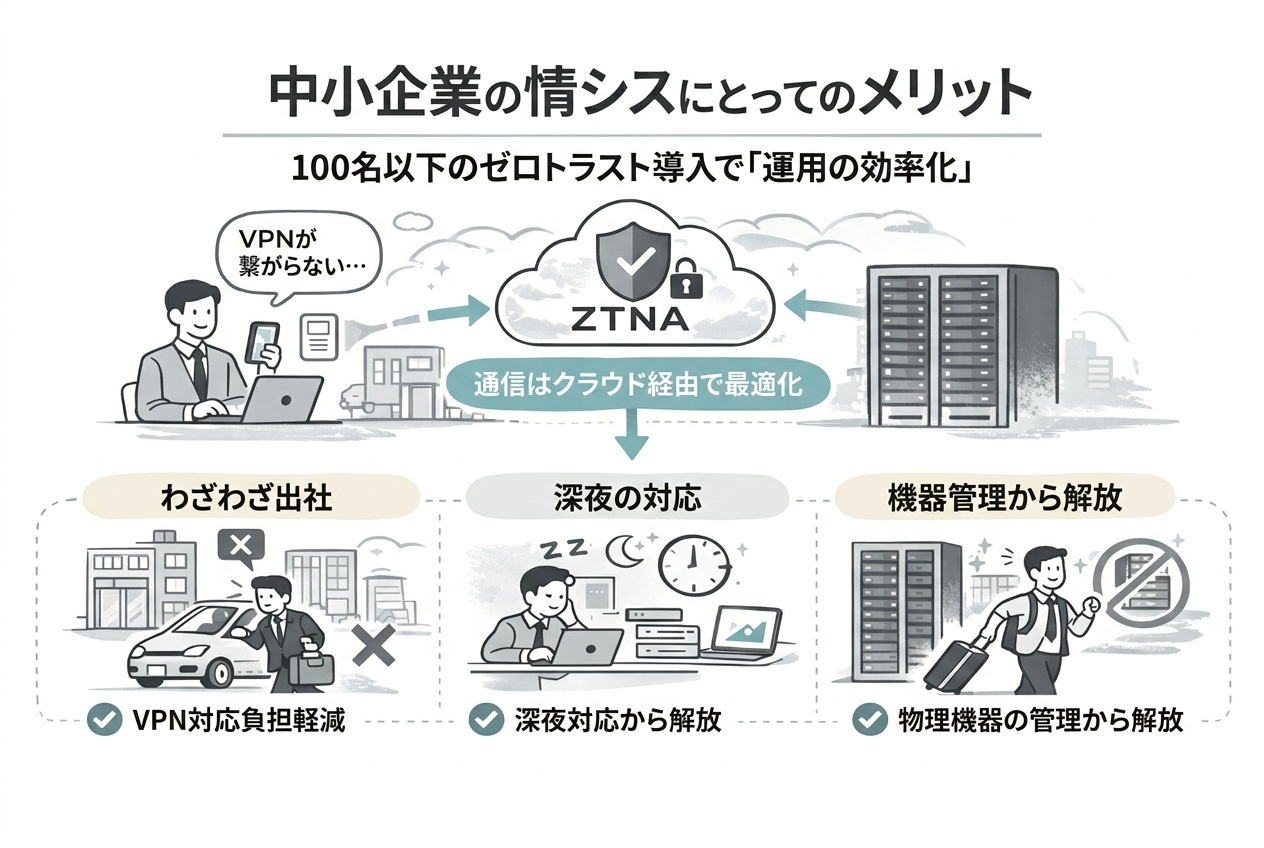 100名以下の規模でゼロトラストを検討する最大のメリットは、実は「運用の効率化」にあります。