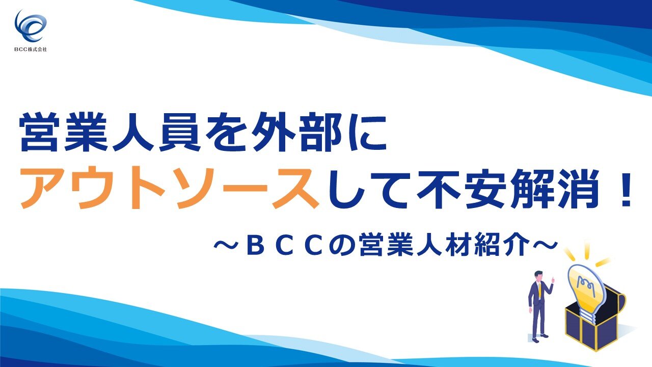お知らせお役立ち資料公開のお知らせホワイトペーパー「営業人員を外部にアウトソースして不安解消!~BCCの営業人材紹介~」を公開いたしましたので、お知らせいたします。 -