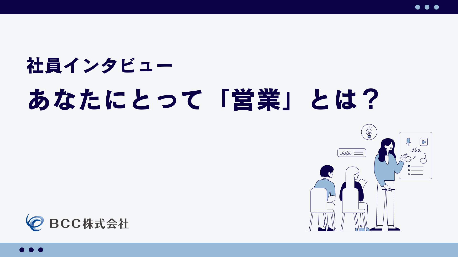 お知らせお役立ち資料公開のお知らせホワイトペーパー「IT営業として活躍しているBCC社員にインタビューしました!」を公開いたしましたので、お知らせいたします。 -