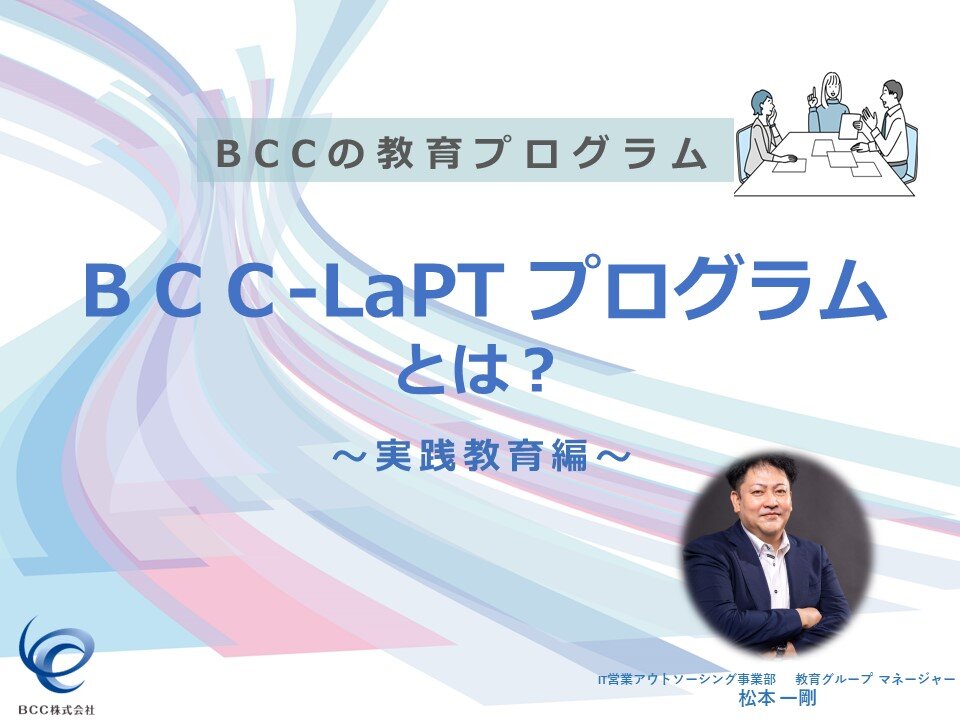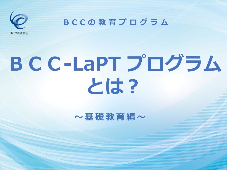 お知らせBCCの教育プログラム BCC-LaPTプログラム 実践教育編の動画が公開されましたBCC LaPTプログラムの動画を公開いたしましたのでお知らせいたします。今回の内容は実践教育編となります。 -