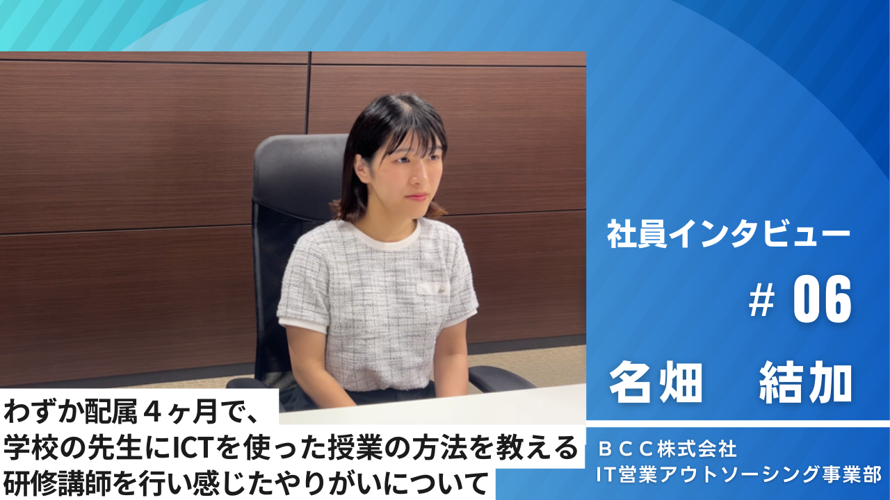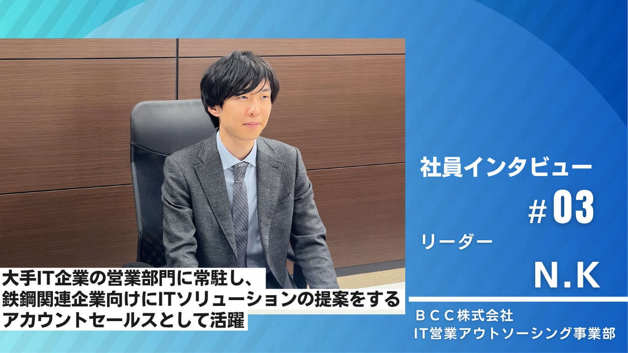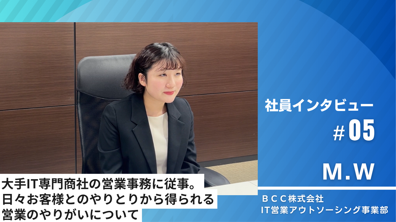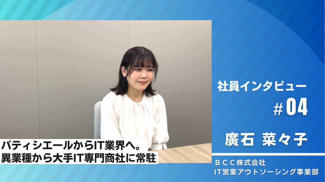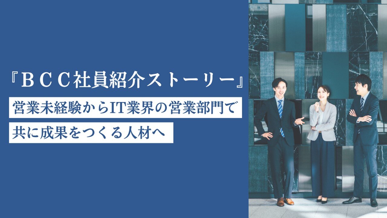 お知らせBCC社員のインタビュー記事公開のお知らせソリューション事業の営業で活躍しているBCC社員にインタビューしました。 -