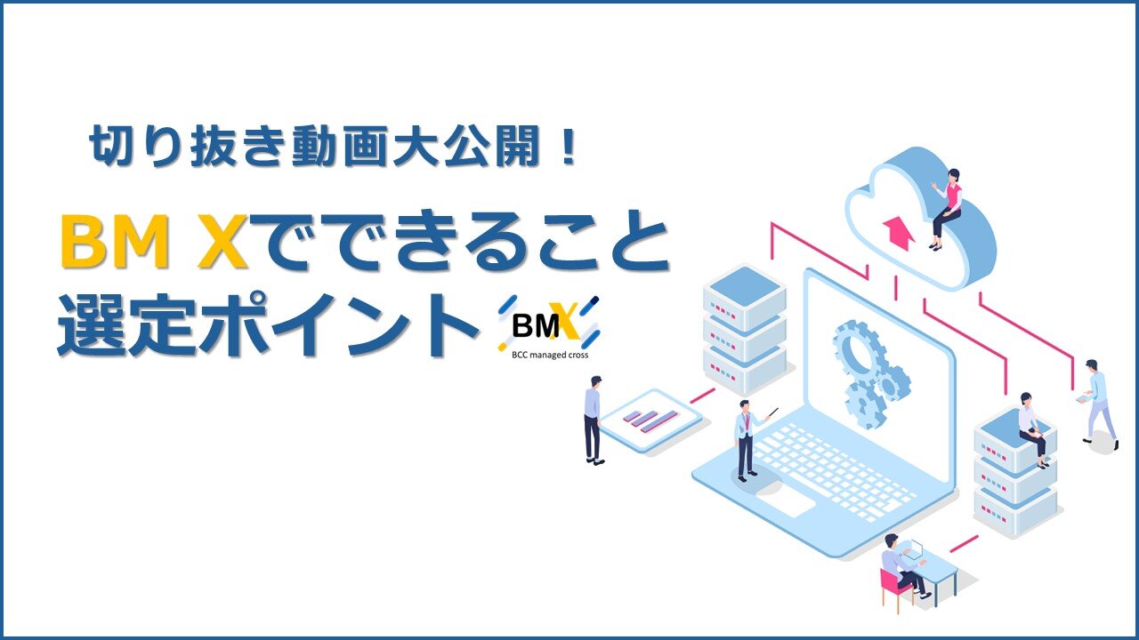 お知らせBM X(BCC managed cross)サービス動画公開のお知らせソリューションにてご提供しております、BM Xサービスの紹介動画を公開しました! -