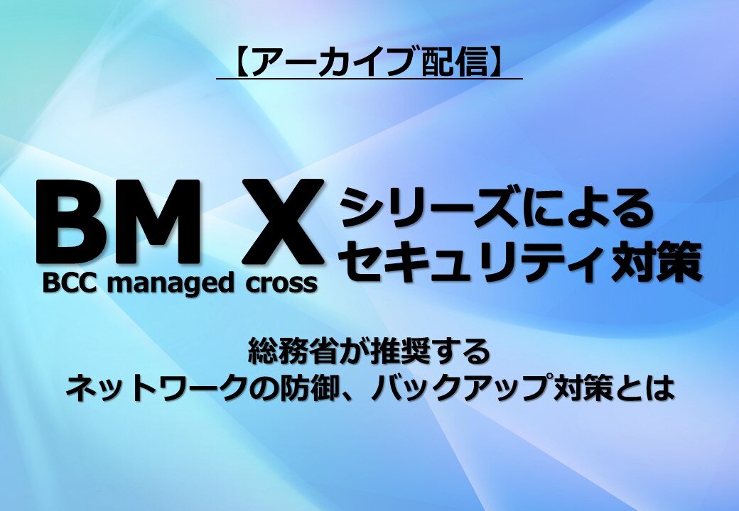 お知らせ【アーカイブ配信】BM X(BCC managed cross)シリーズによるセキュリティ対策~総務省が推奨するネットワークの防御、バックアップ対策とは~ -