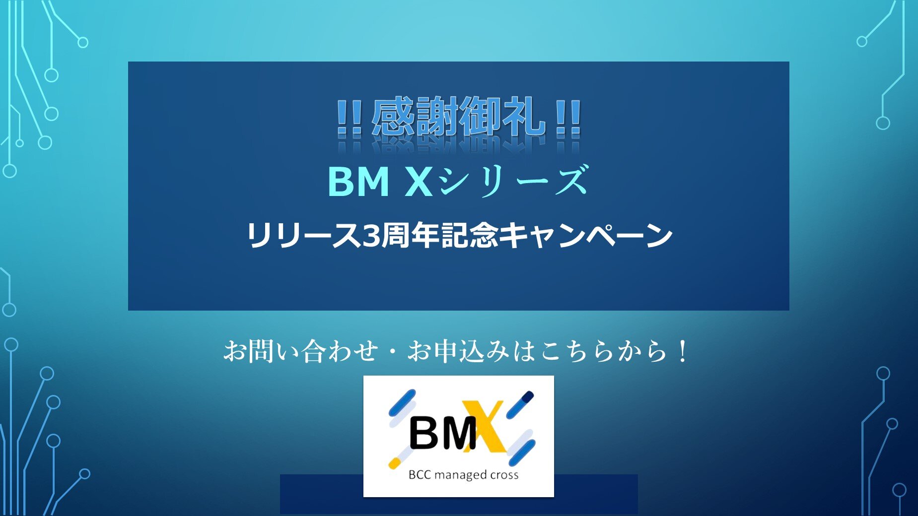 お知らせBM Xシリーズ リリース3周年記念キャンペーン【感謝御礼】BM Xシリーズ リリース3周年記念キャンペーンを開催しました! -
