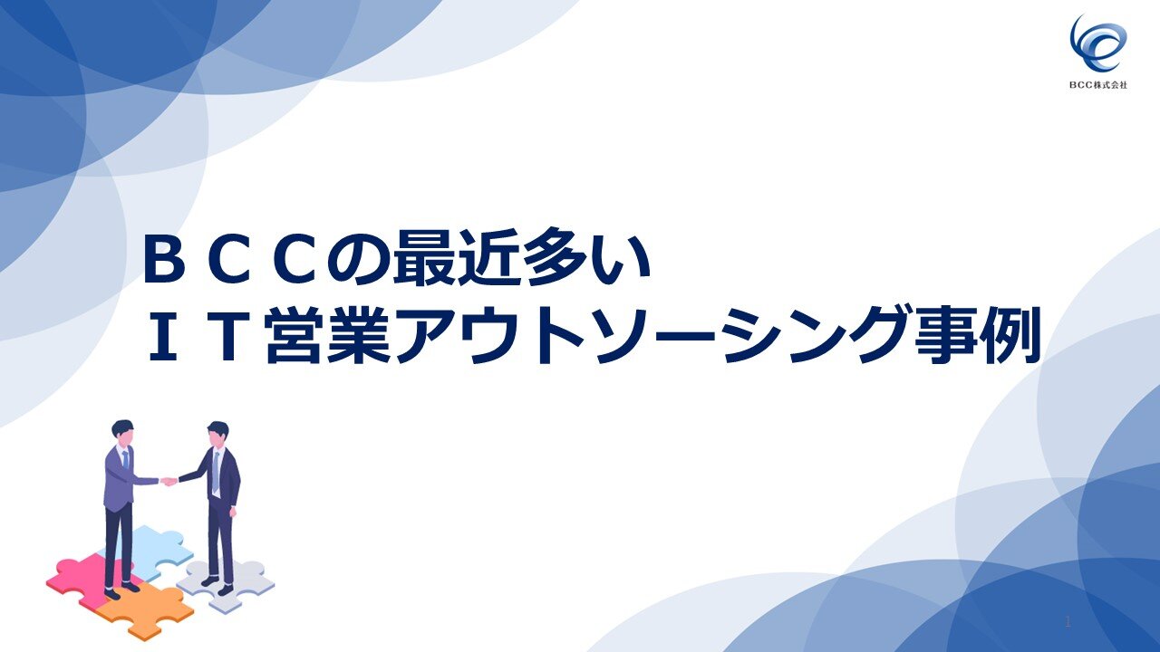 お知らせお役立ち資料公開のお知らせホワイトペーパー「BCCの最近多いIT営業アウトソーシング事例」を公開いたしましたので、お知らせいたします。 -