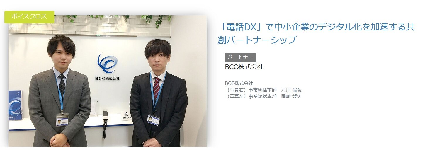 お知らせ株式会社コムスクエアのパートナー企業としての取り組みについて掲載していただきました。株式会社コムスクエアの【VoiceX】を利用した電話業務のDX化への取り組みにつきまして、弊社をパートナー企業として掲載していただきました。 掲載先:日経クロステック Active -